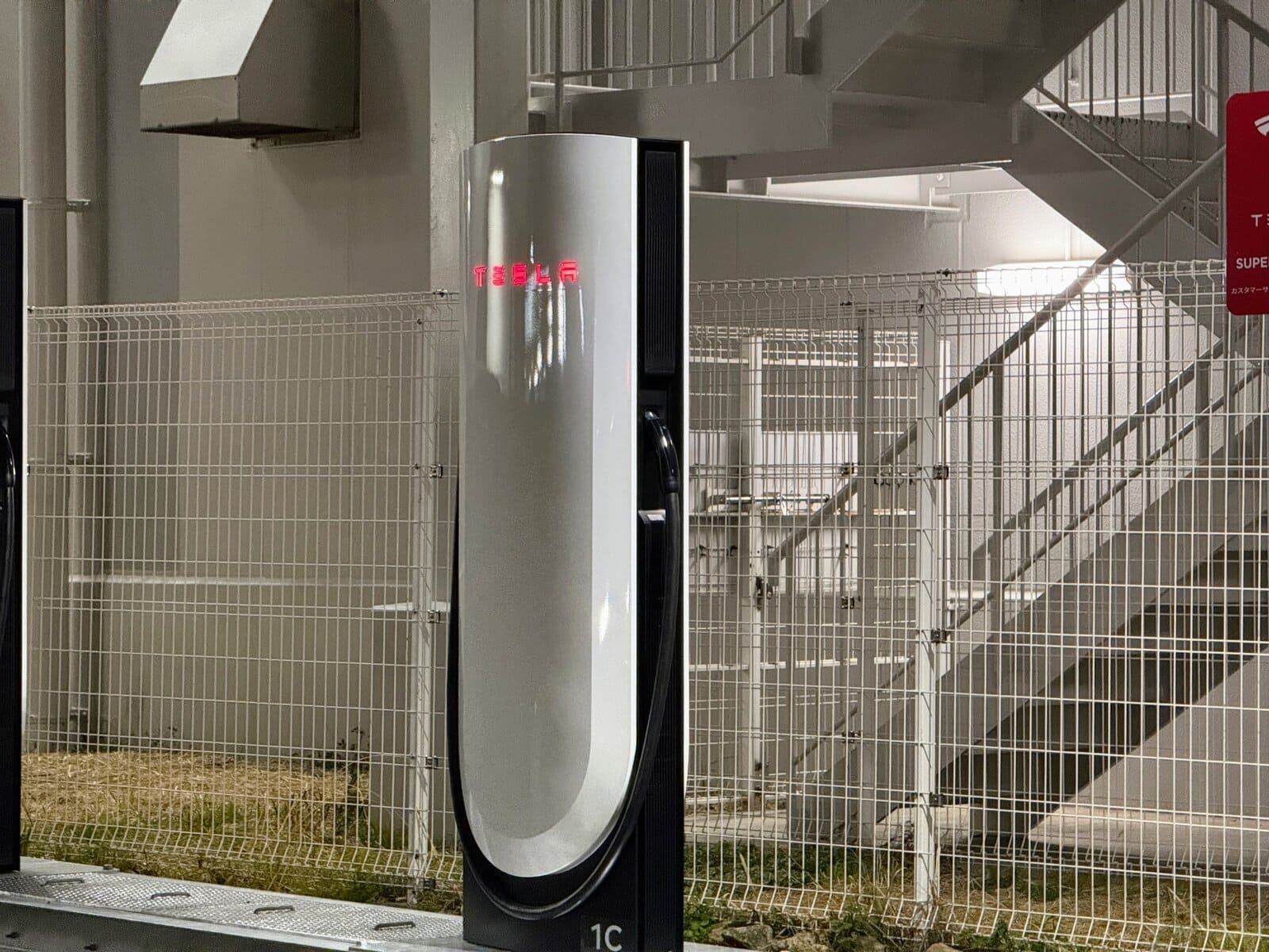 テスラ専用のEV充電ステーションだったようです〜!スーパーチャージャーと呼ぶそうな。