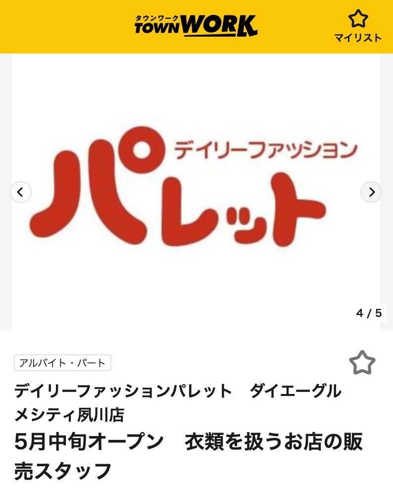 デイリーファッションパレット ダイエーグルメシティ夙川店のアルバイト・バイト求人情報|【タウンワーク】でバイトやパートのお仕事探しより引用