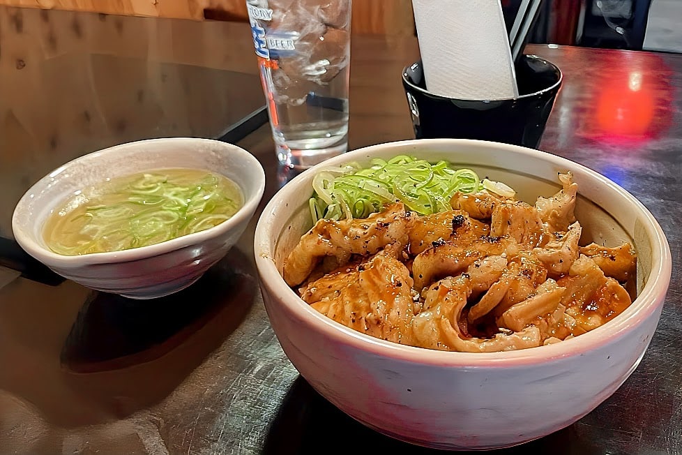 今津西線ぞい今津駅ちかく「炭火焼肉 あかり」の『ホルモン丼』【やじきたグルメ】