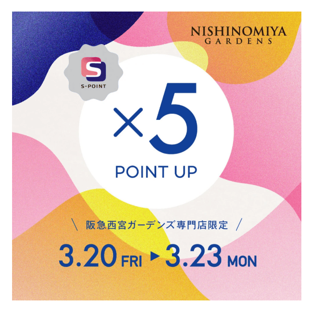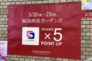 今日から「阪急西宮ガーデンズ」でSポイントが5倍になっています。