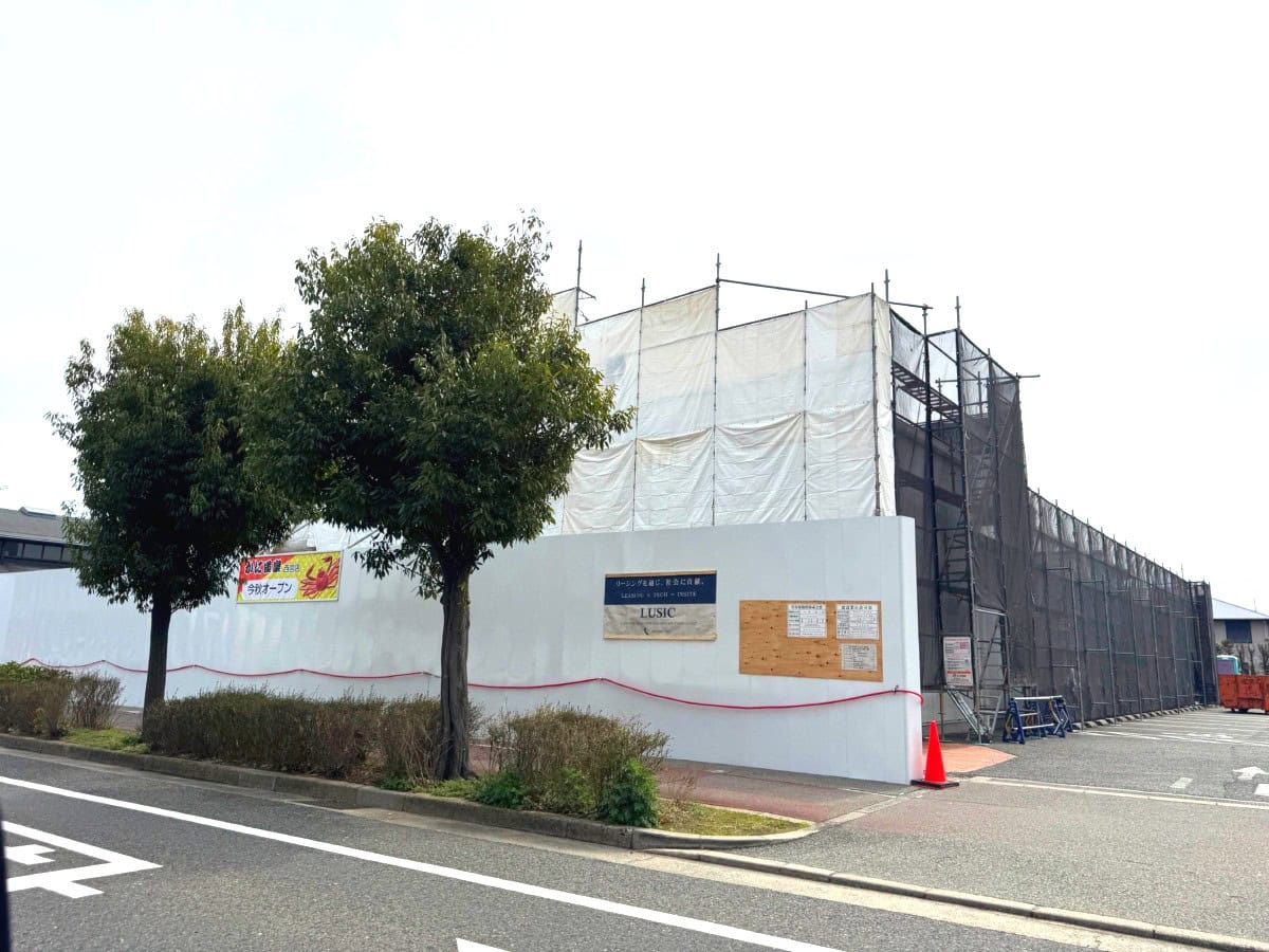 外壁全体がシートで覆われていました。貼り紙によると、もともとあったGUの建物を使ってまるごと改装するようです。カニの看板がつくの楽しみですね〜🦀
