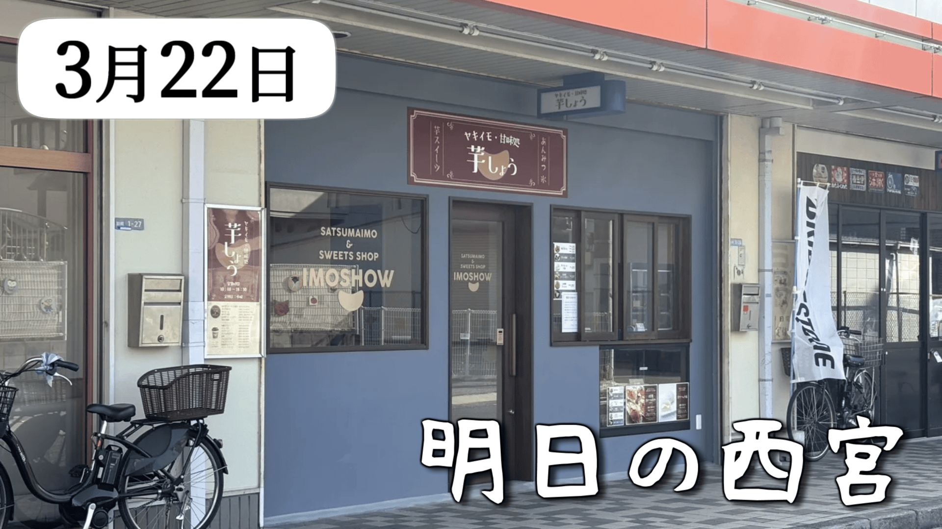 明日、3月22日で起こる西宮の情報をにしつーがお知らせします。