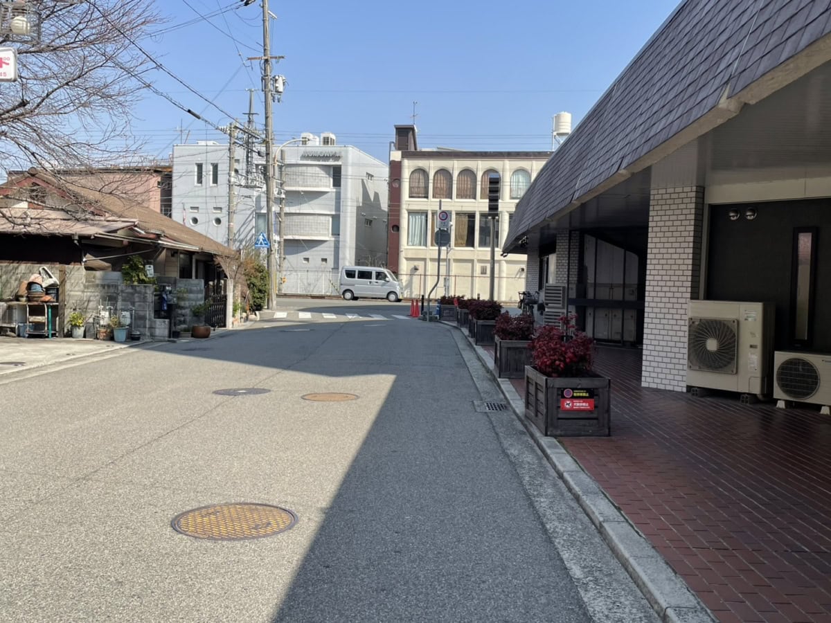 反対方向に行くと、阪急今津線沿へ。角にはNAGASAKIYA ROASTERYがあります。右に曲がると門戸厄神駅前です。