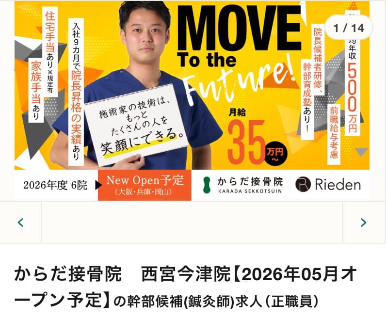 からだ接骨院 西宮今津院の幹部候補(正職員)求人 | 転職ならジョブメドレー【公式】より引用