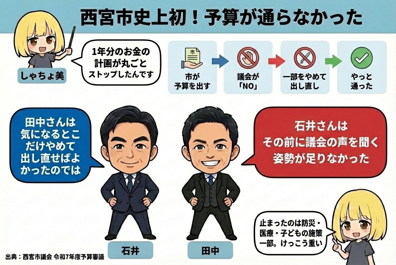 ❶ 西宮市史上初の「予算が通らなかった」って何だったの?