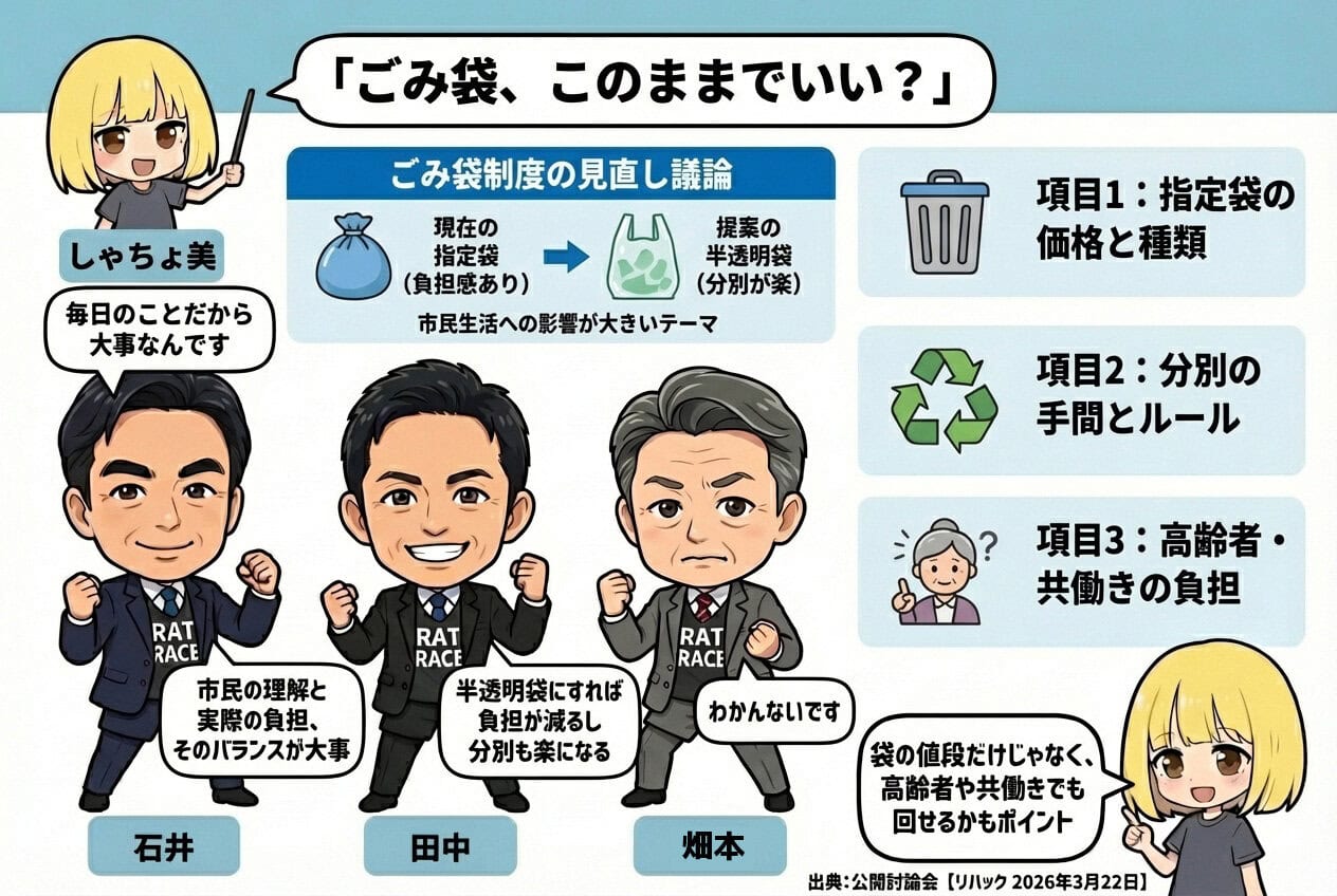 最後に出てきたのがごみ袋が討論会では短めだったけど、生活に近いからしゃちょ美的には気になる人多いと思ってます!