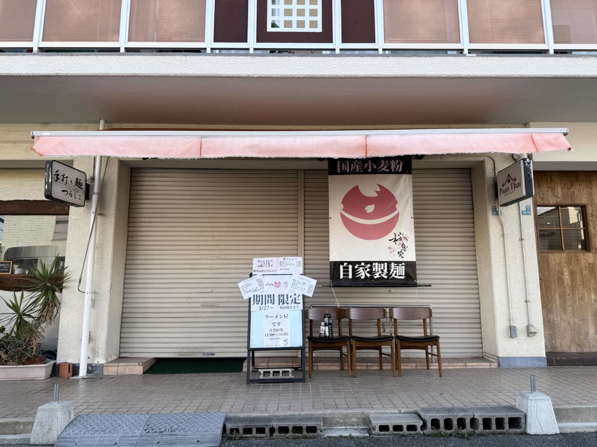 苦楽園口駅近く南越木岩町で、関西スーパー広田店そばのラーメン屋「麺屋 桜息吹」が期間限定出店するようです。