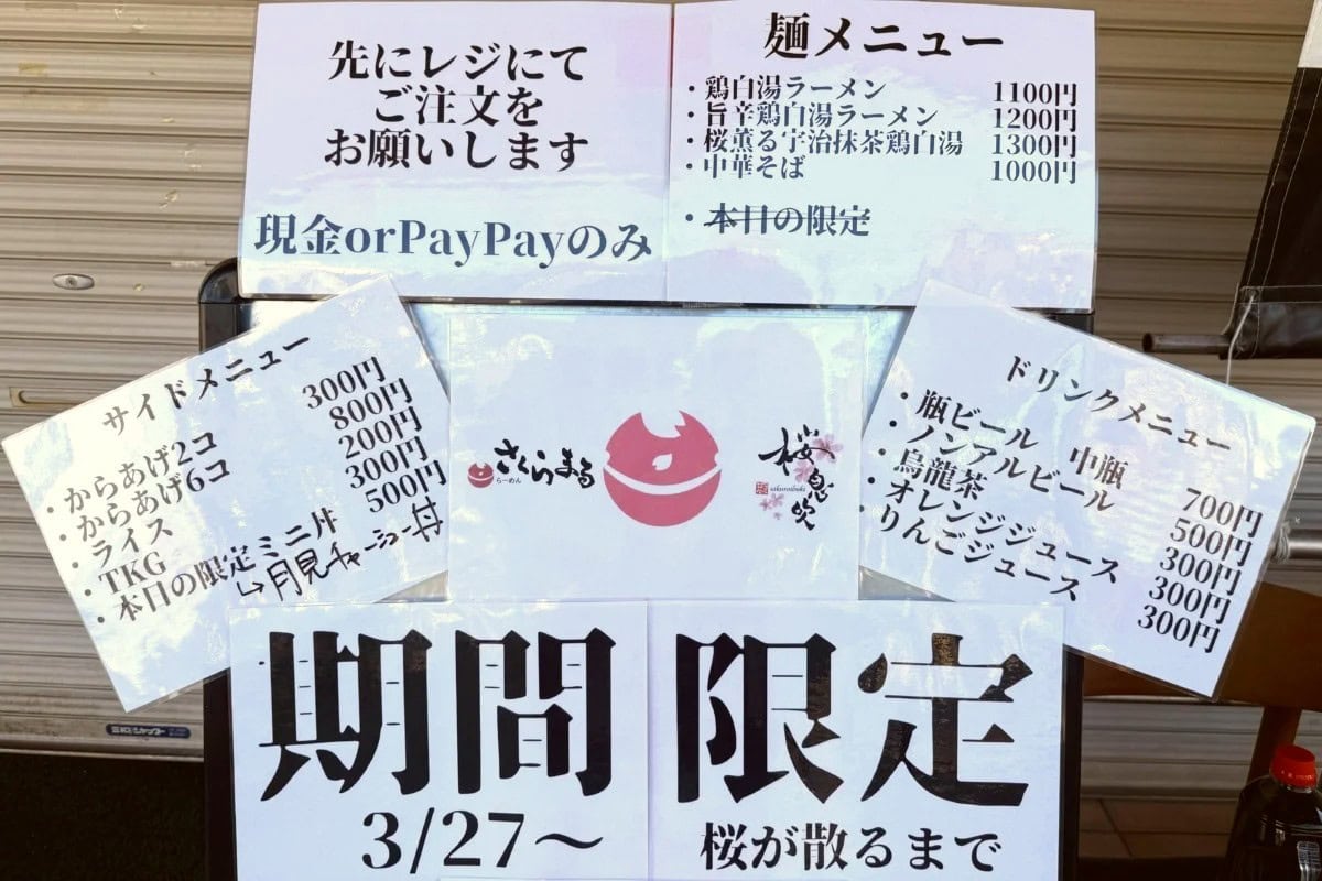 苦楽園口駅ちかくに広田のラーメン「桜息吹」が出店するみたい。桜が散るまで