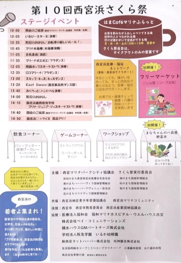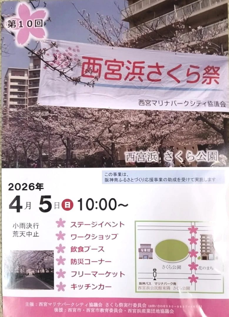 4月5日(日)に、西宮浜のさくら公園で「さくら祭」が開催されるようです。