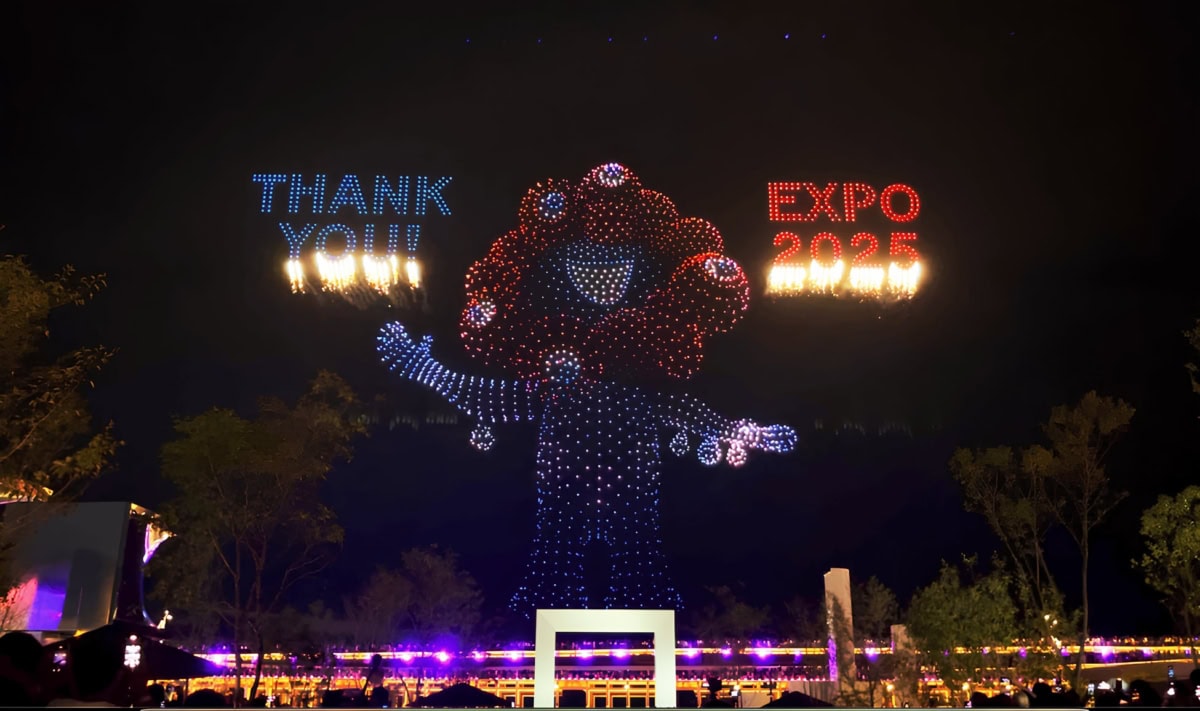 万博最終日にサプライズで登場した「巨大ミャクミャク」のドローン演出を踏まえつつ、支援状況に応じて演出のスケールも広がっていくとのこと。