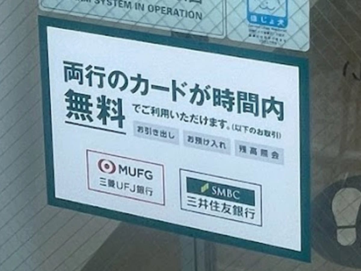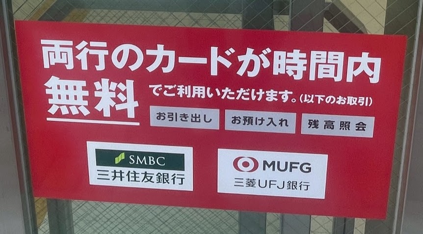 甲子園口駅南側にある、三井住友銀行と三菱UFJ銀行のATMで、両方のカードが無料で利用できるようです。
