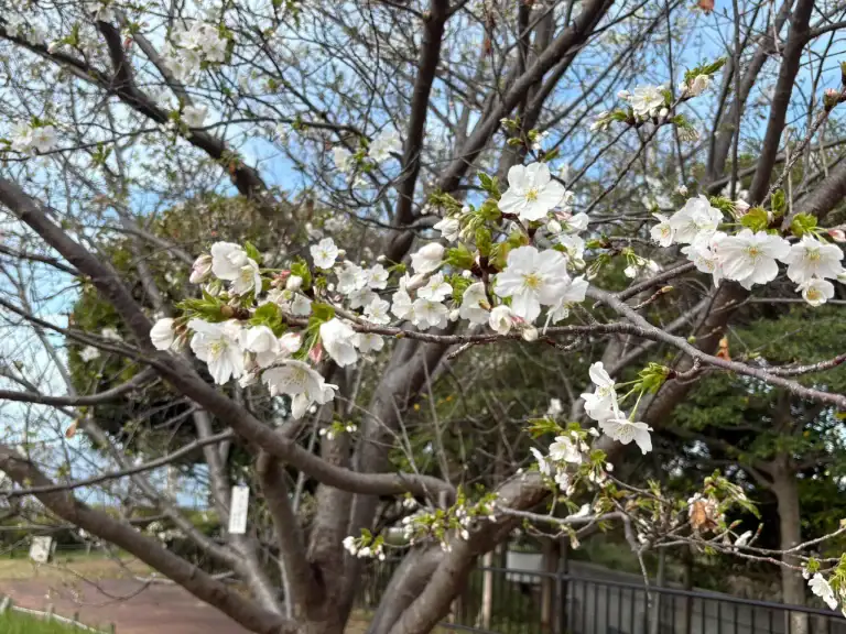 鳴尾浜の芝生公園にある桜が、いい感じに咲き始めてます。
