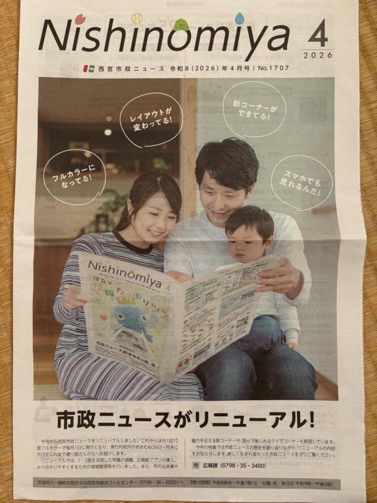 2026年4月から「西宮市政ニュース」がリニューアルされました~。届いた?