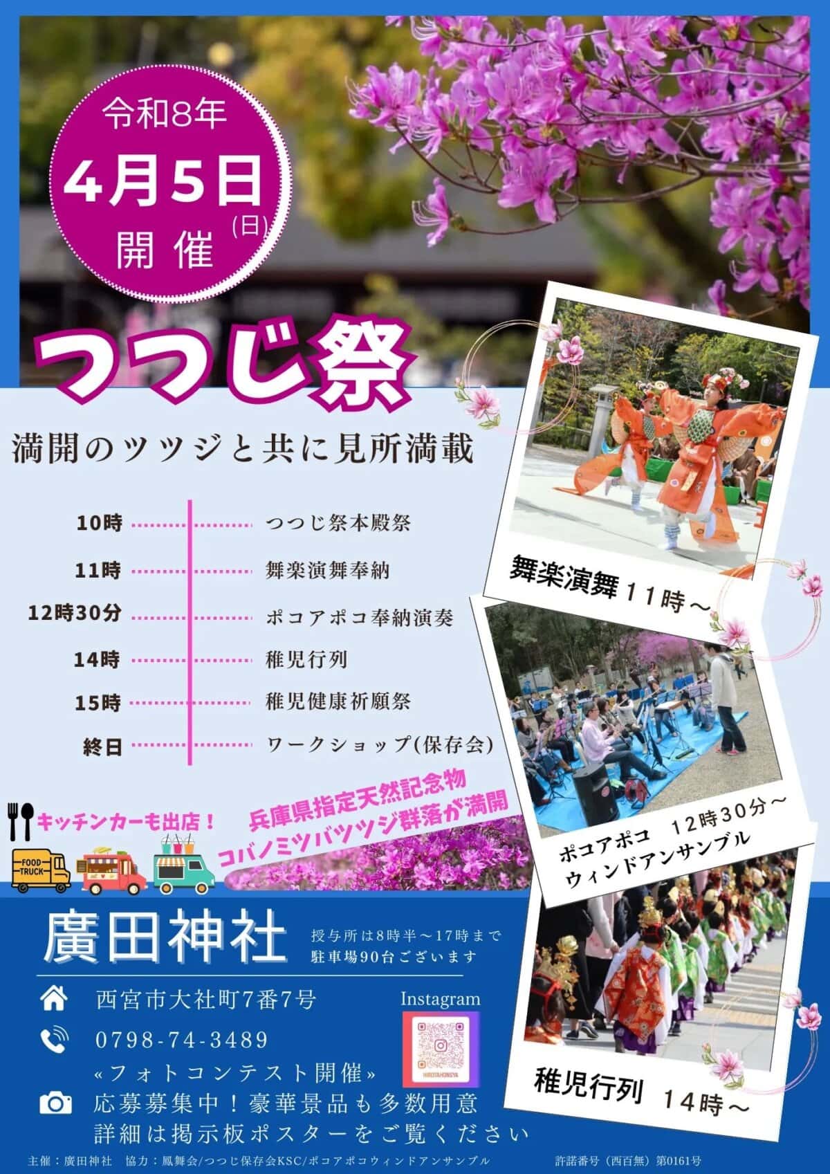 4月5日(日)、廣田神社で「つつじ祭」が開催されるようです。