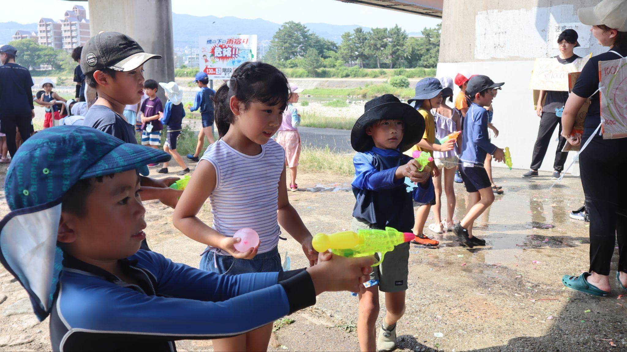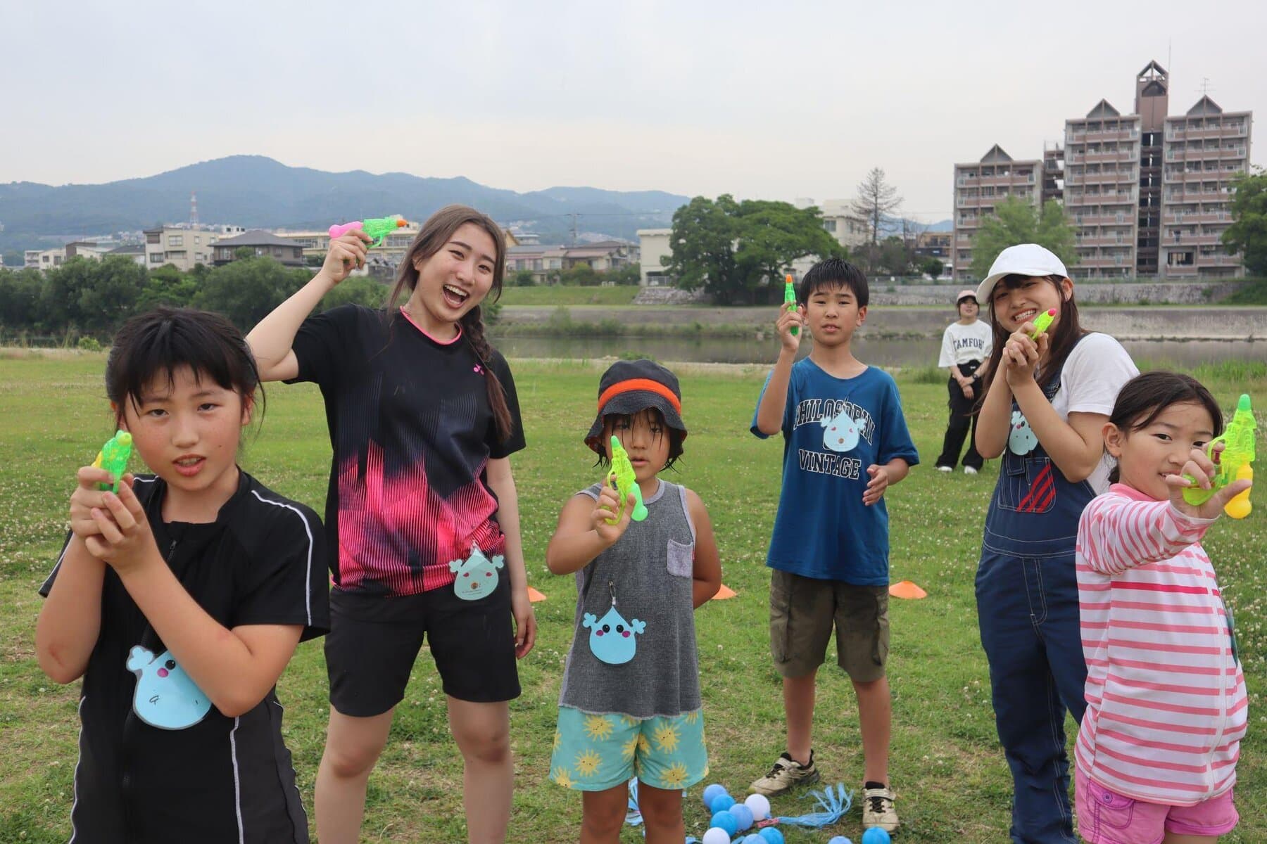 昨年大人気だった水あそびイベント、今年もやります!水鉄砲や水風船、バケツを使ってみんなでびしょぬれになるやつ〜