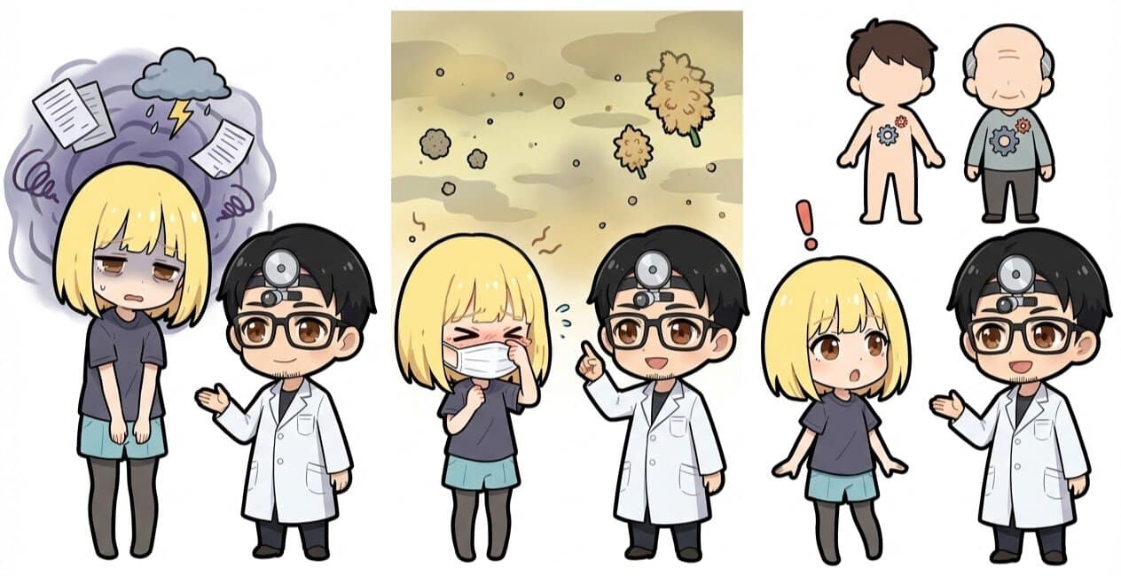 ストレスが多いと免疫反応が過剰になりやすい。仕事がしんどい年ほど花粉症もしんどい…ってのはありえる話