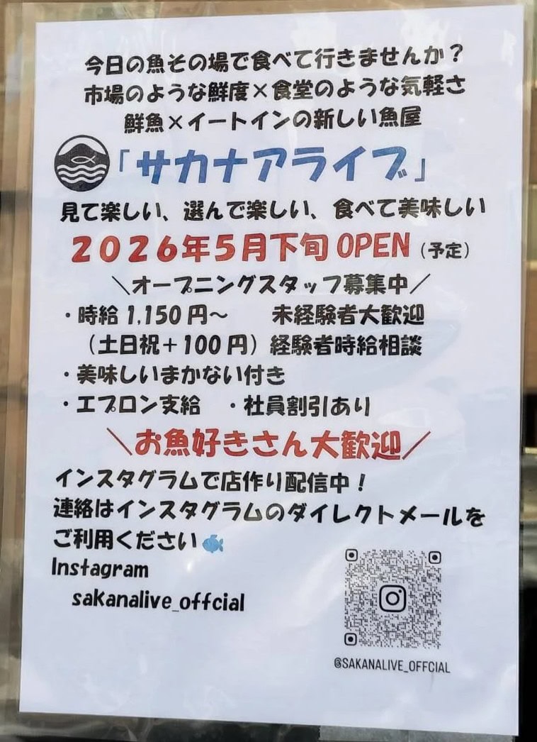 大沢西宮線沿いに魚屋さん「サカナアライブ」できるようです。