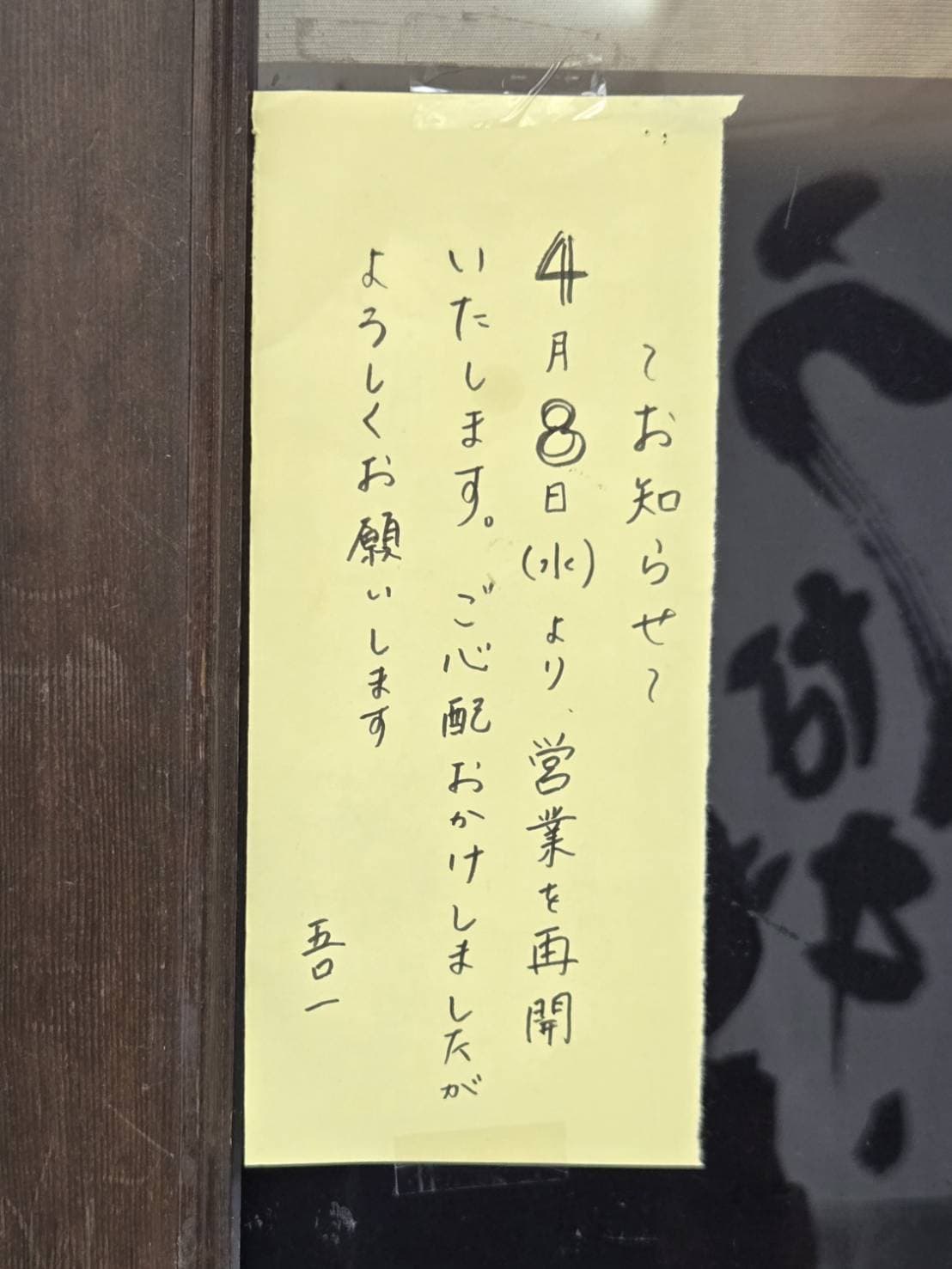アクタ西宮で休業中だった、立ち飲み屋「吾一」が営業再開するようです。
