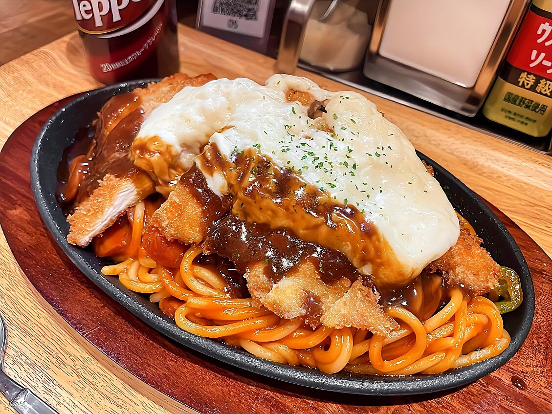チーズどっばぁ〜。カツど〜ん。背徳ナポリタン🍝
