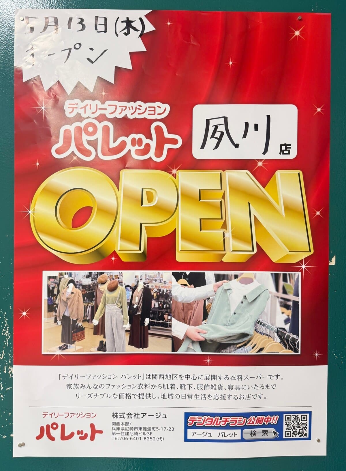 夙川グリーンタウン2階できるとお伝えしていた「デイリーファッション パレット」は、5月13日(水)にオープンするようです。