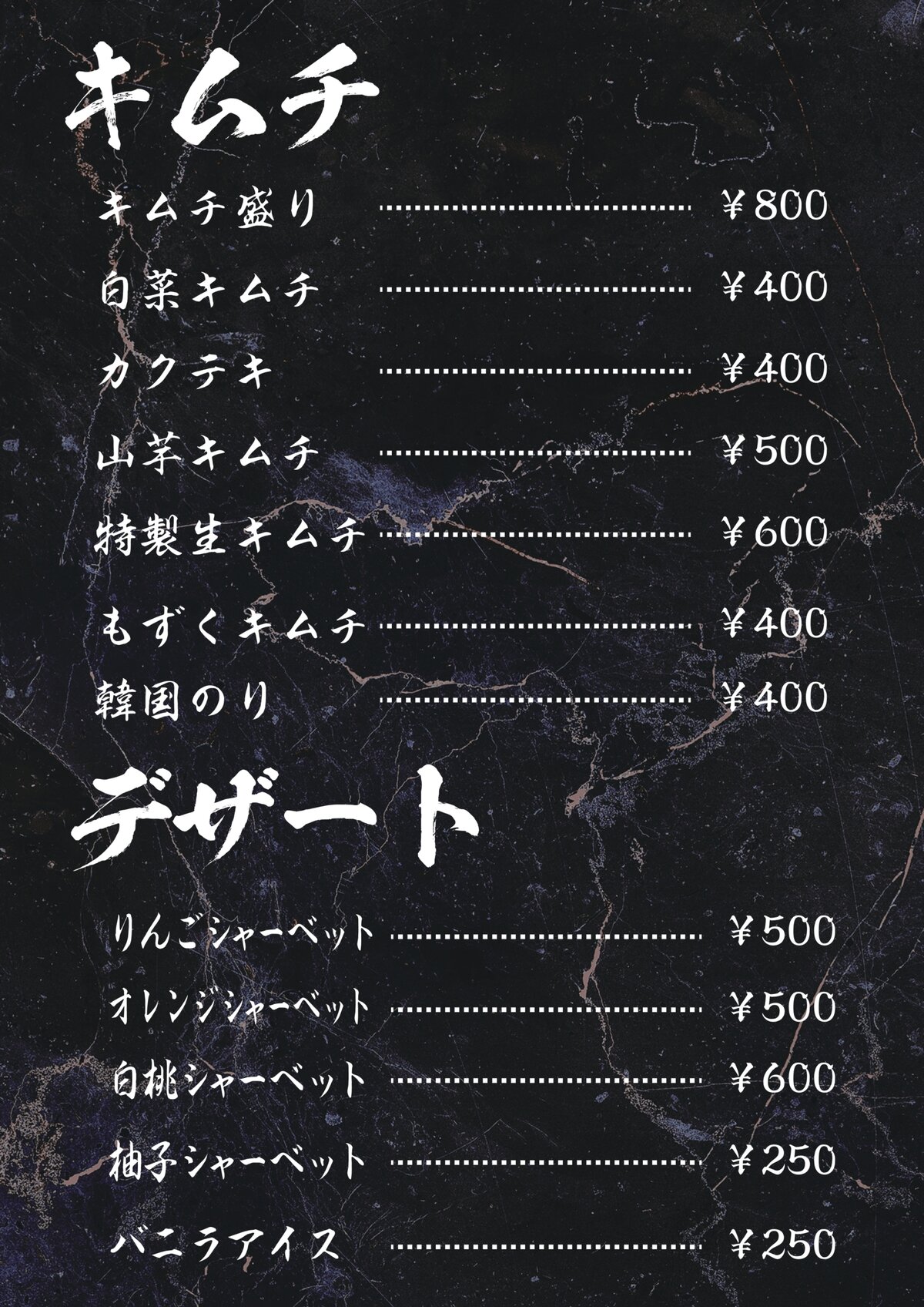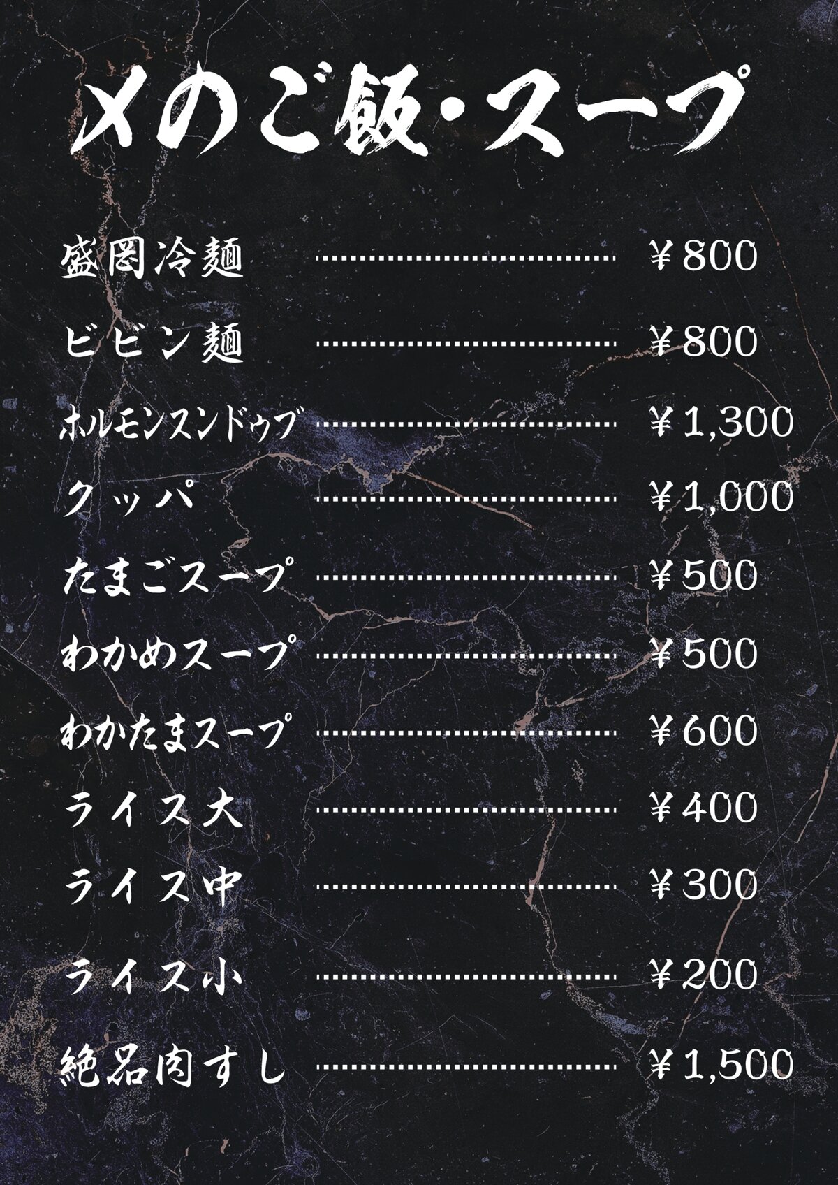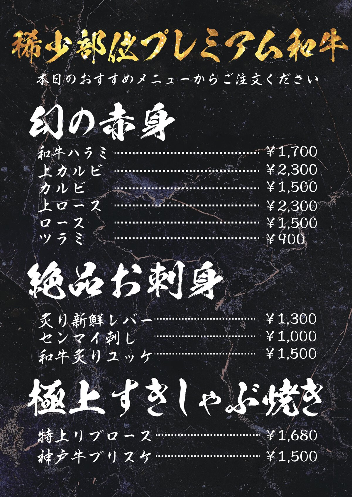 和牛焼肉だけに「今日はちょっとええ焼肉の日」って気分になる雰囲気のメニュー