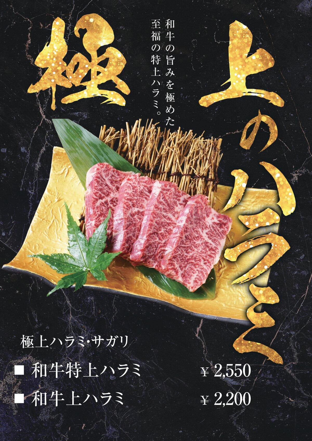 いきなり和牛特上ハラミ2550円、和牛上ハラミ2200円で、店名の「ハラ」ですね!