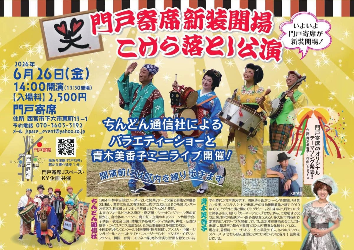 こけら落とし公演では、ちんどん隊が町内を練り歩くそう。さらに「門戸寄席のオリジナルテーマソング」も発表されるみたい😄