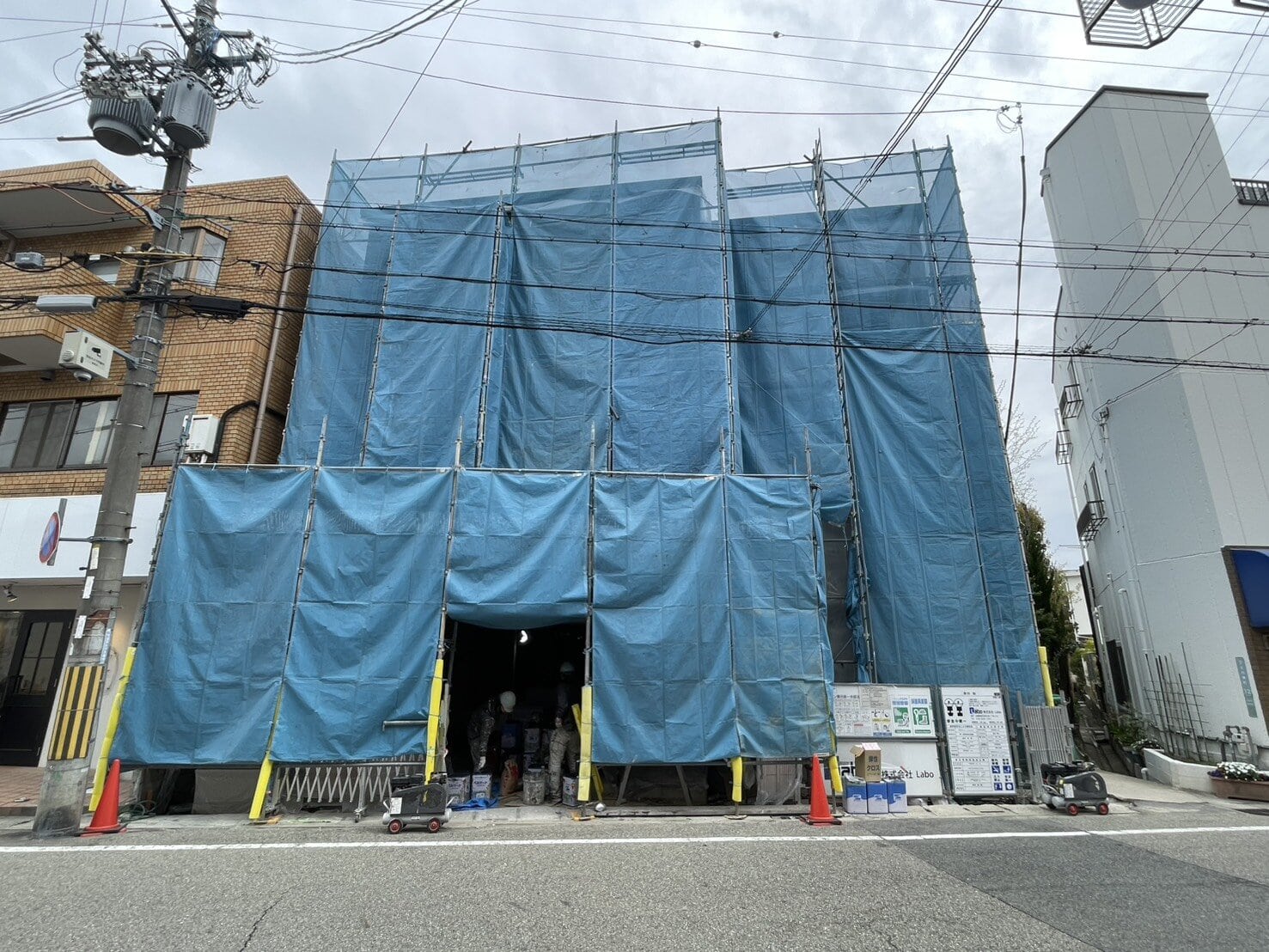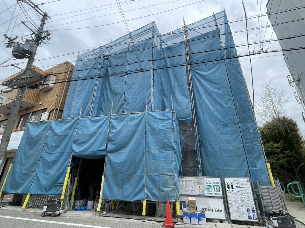 新しい建物はまだシートに覆われていて、全貌は見えない感じ。どんな建物になるのか、今からちょっとワクワクしますね😄門戸寄席の約1年ぶりの復活。楽しみにしていた方は、いよいよって感じですね〜