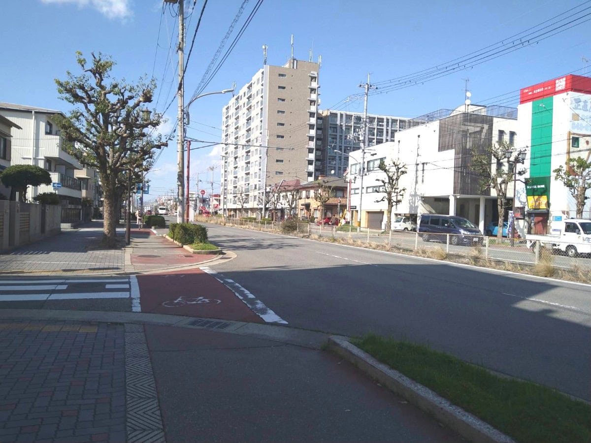 南隣にはコインランドリーピエロ、その先にセブンイレブンなどがあり、阪神本線の下を通って国道43号線へ。