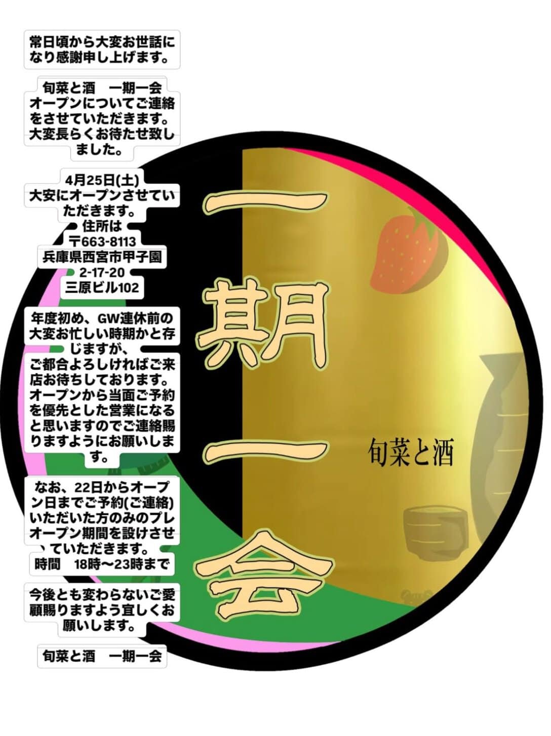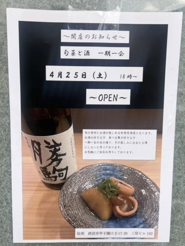 甲子園口ほんわか商店街に「旬菜と酒 一期一会」ができるようです。