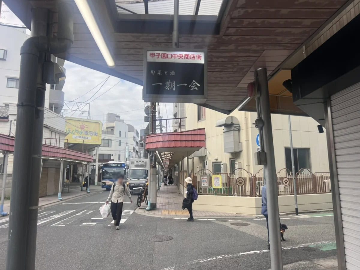 反対方向へ行くと、稲荷神社、闇市、はるいろ、ファミリーマートなどがあり、JR甲子園口駅へ。