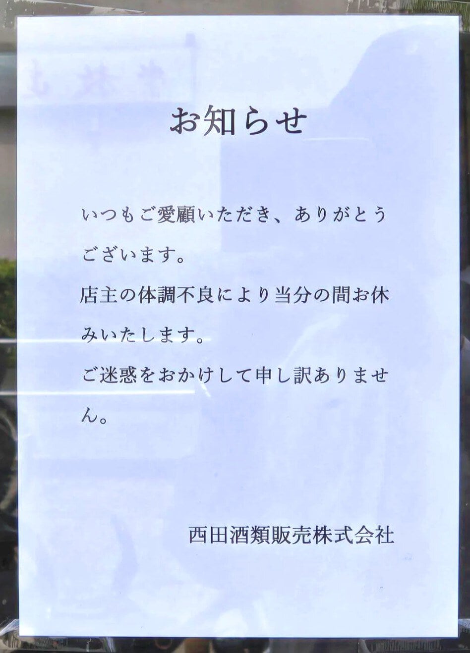 アクタ西宮の「西田酒類販売」が休業しています。