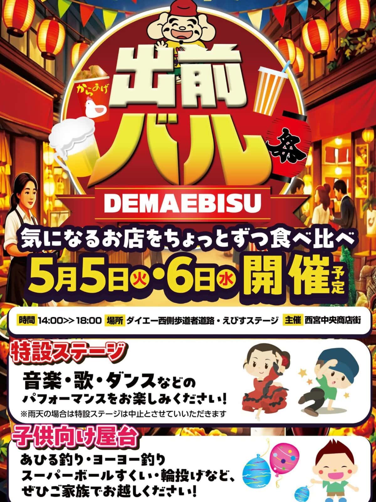 5月5日(火)・6日(水)、阪神西宮で「出前バル DEMAEBISU」が開催されるようです。
