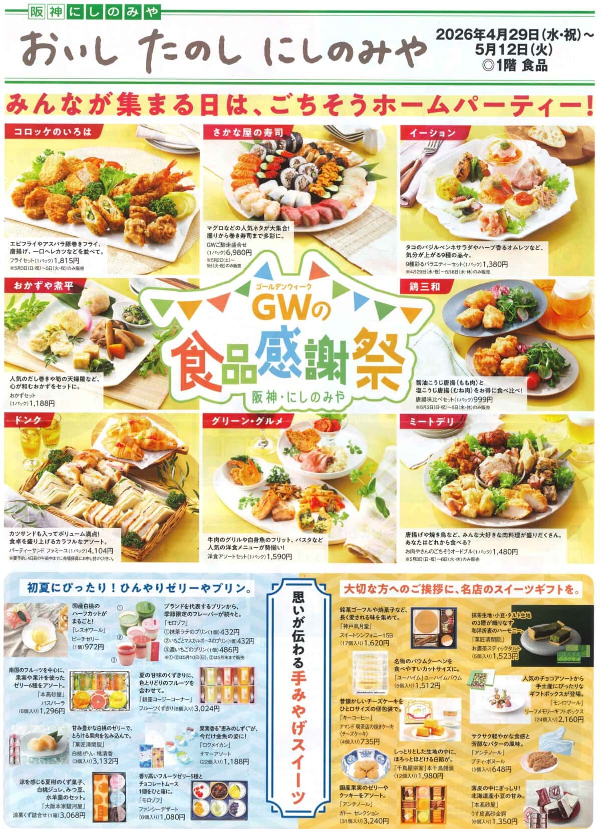 今回、阪神・にしのみや4月29日(水・祝)〜5月12日(火)までGWの食品感謝祭がはじまります〜!