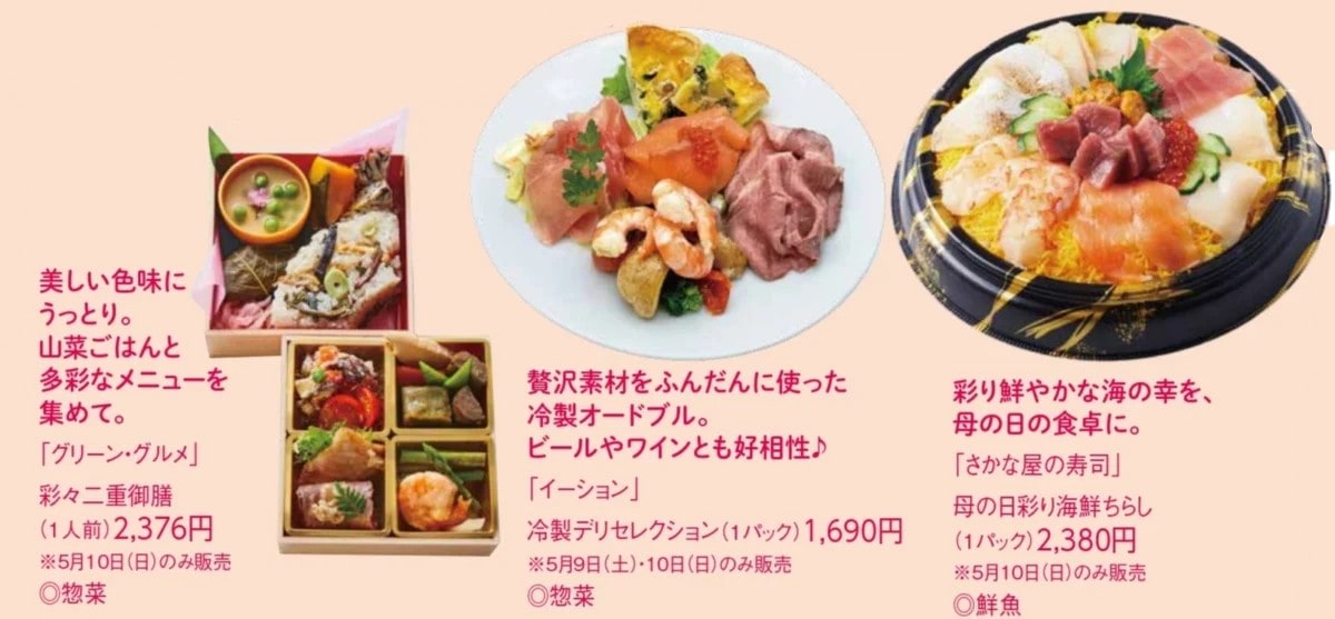それから4/30(木)巻き寿司どれでも1本238円と、5/8(金)寿司全品店頭価格より1割引もあります〜