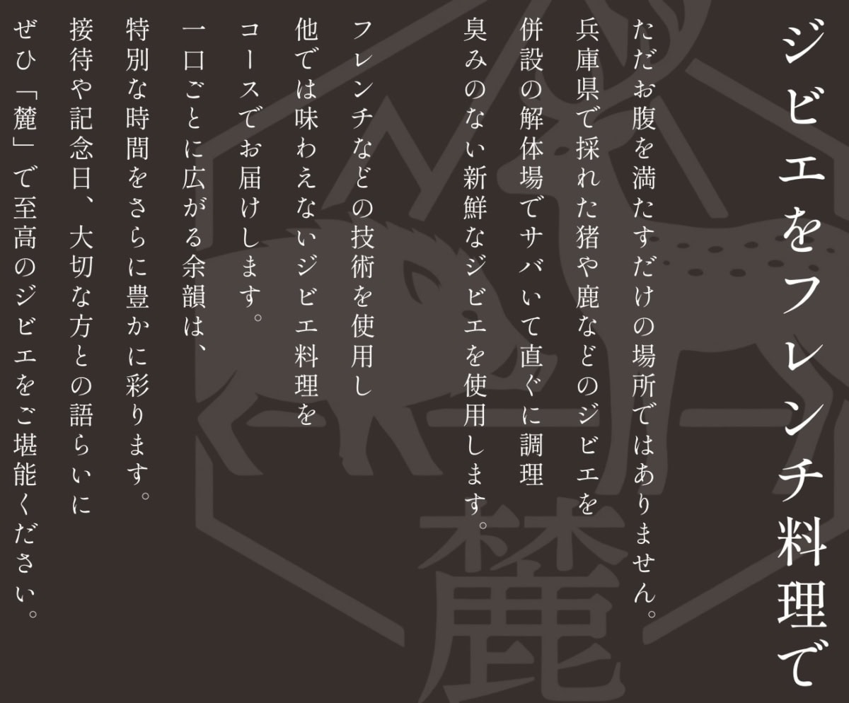 ジビエフレンチ料理-hunters kitchen 麓~Roku~in西宮より引用