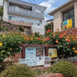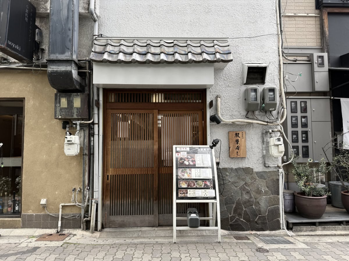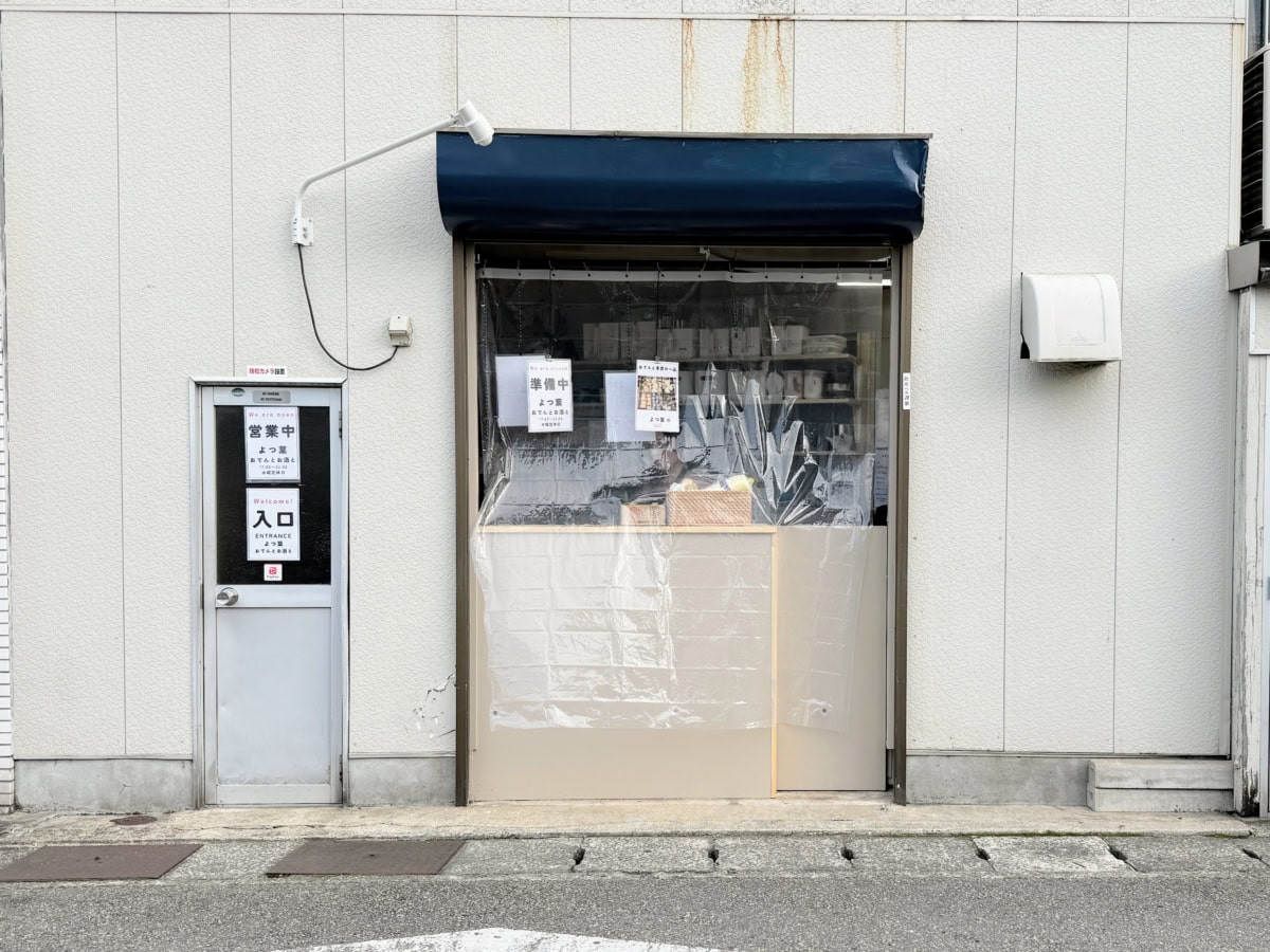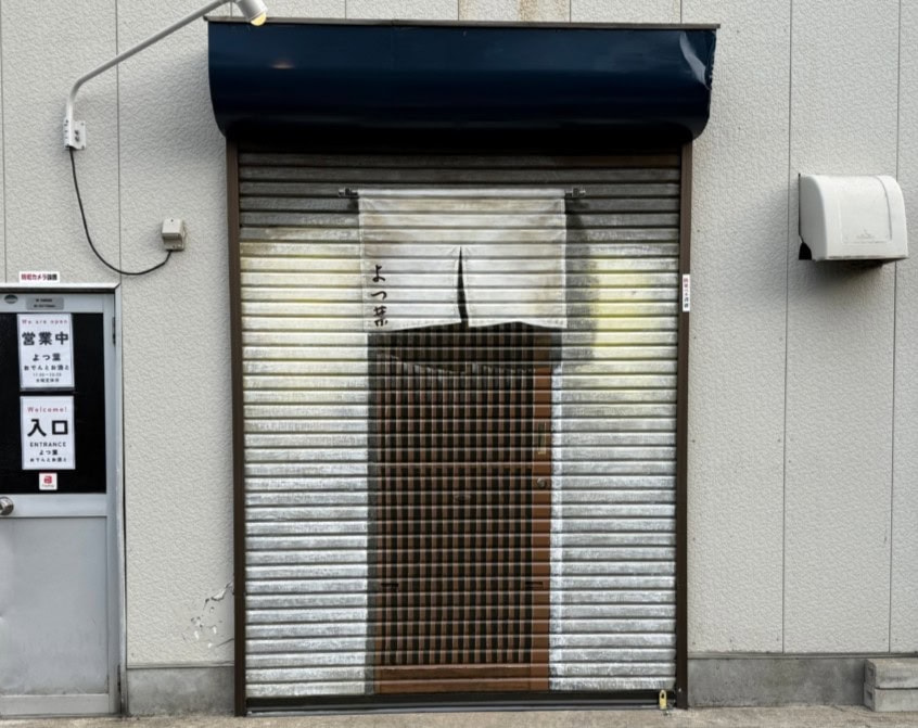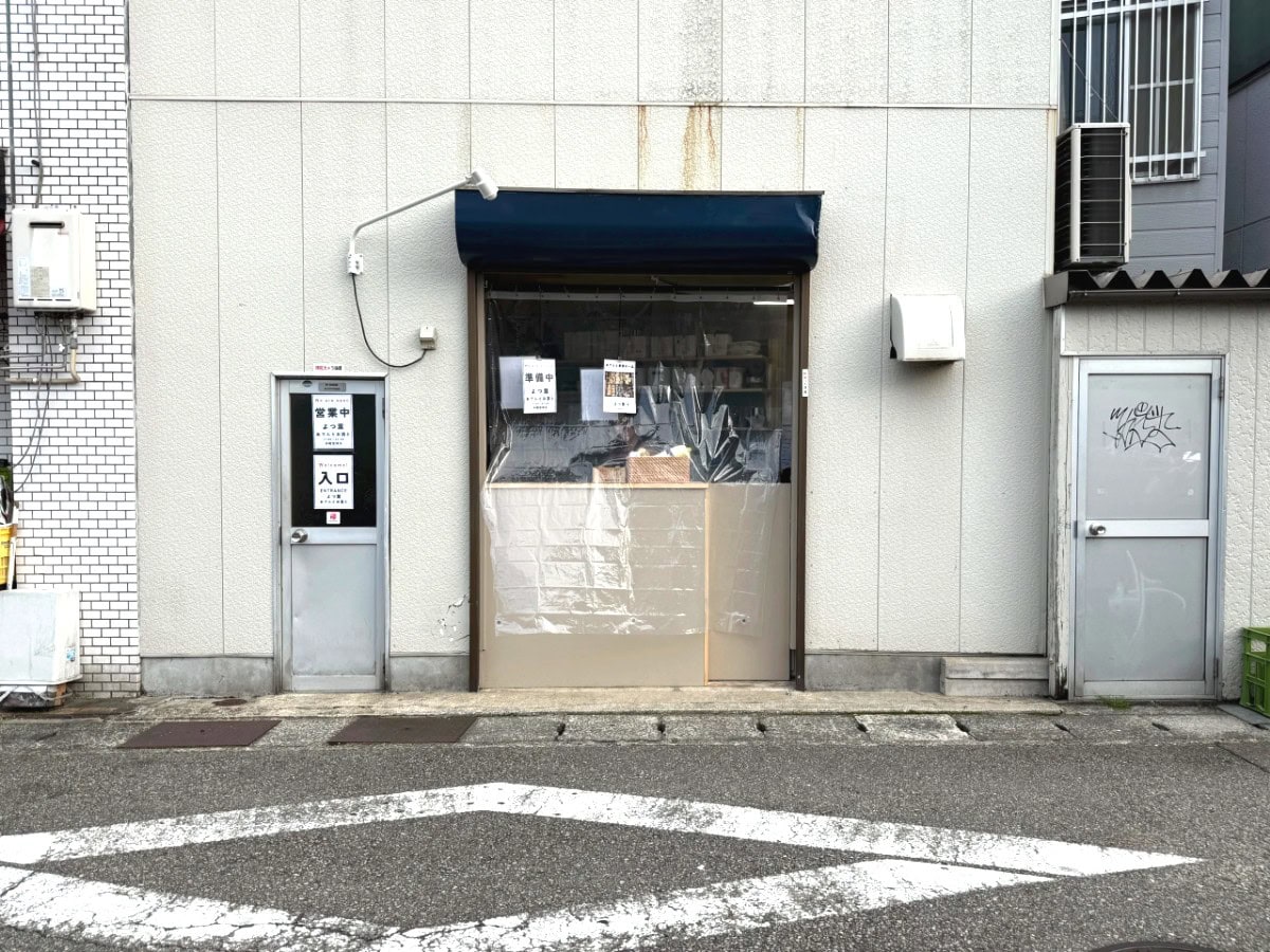 よつ葉の外観です。店内へは左側の入口と書かれた扉から入店できます。