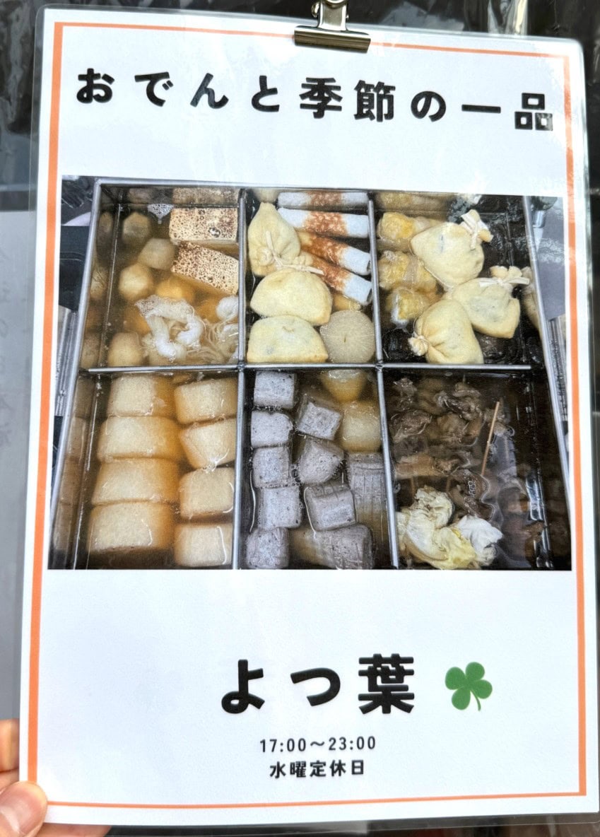高松町の西宮北口駅南東口近くに「よつ葉」という、おでんとお酒のお店ができています。