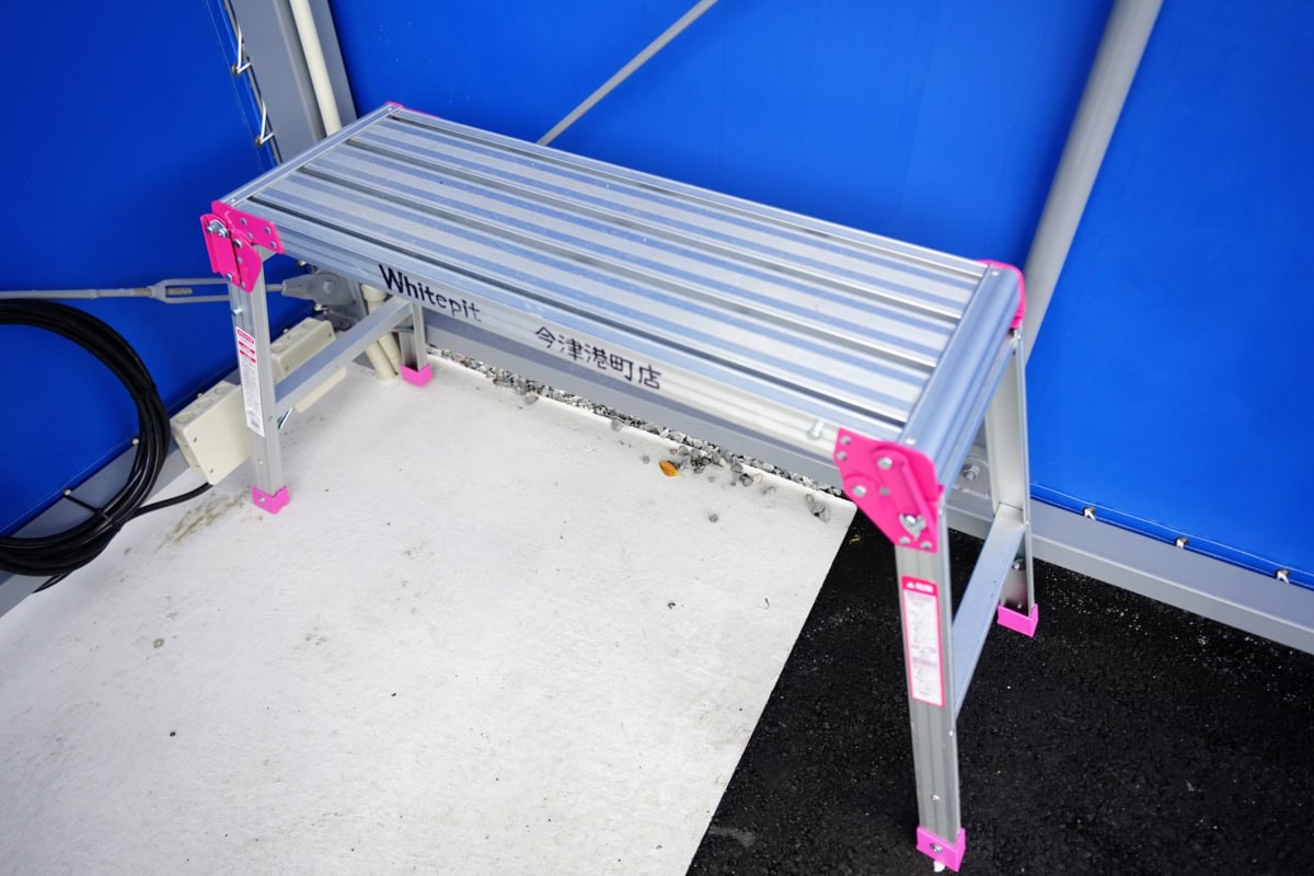 足場台に乗って車の上もしっかり。時間内なら使い放題ですし、汚れてるとこを重点的にできる自由度がいい。
