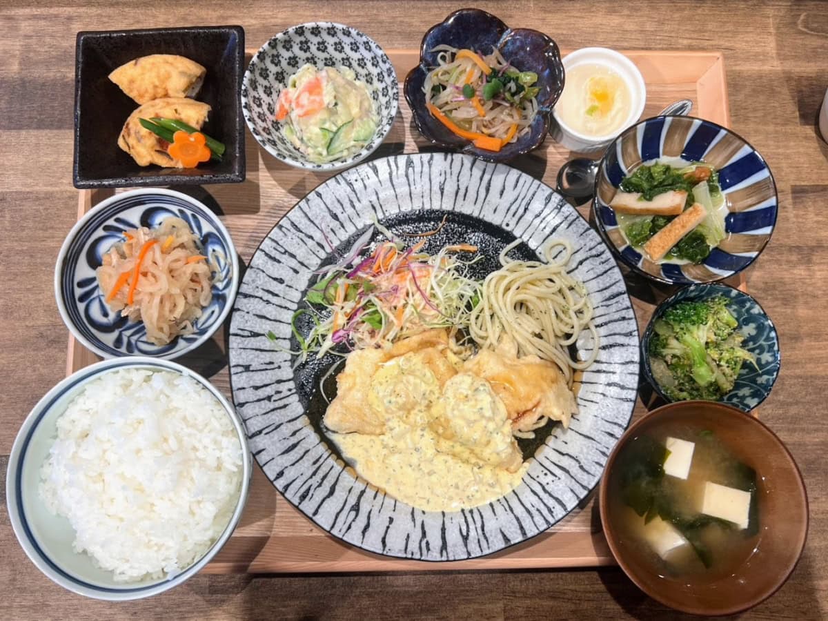 にしのみやでごはん@にしつーサポーターも食べに行ってました〜。小鉢全部盛りで1,400円。お得!